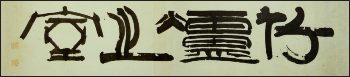이 편액은 각 글자를 독립적인 조형 예술로 승화시킨 걸작이다. 竹(죽)자는 좌우 비대칭으로 대나무의 강직함과 유연성을 표현한다. 爐(로)자는 작은 火 부와 무게감 있는 盧 부분의 대비로 다실의 온기와 차향을 드러낸다. 之(지)자는 전서 필법을 변주해 공간의 흐름을 잇는 시각적 이음새 역할을 한다. 室(실)자는 다실 내부 구조와 창을 연상시키는 형태로 차와 고요가 머무는 공간을 그려낸다. 추사는 전서·예서·해서를 자유롭게 혼용했다. 획의 장단, 곡선의 굽힘, 여백의 숨결을 생동감 있게 담아냈다. 네 글자가 모여 하나의 정신적 다실을 이루며, 차향과 인격이 머무는 공간을 시각적으로 구현한 작품으로 평가된다.