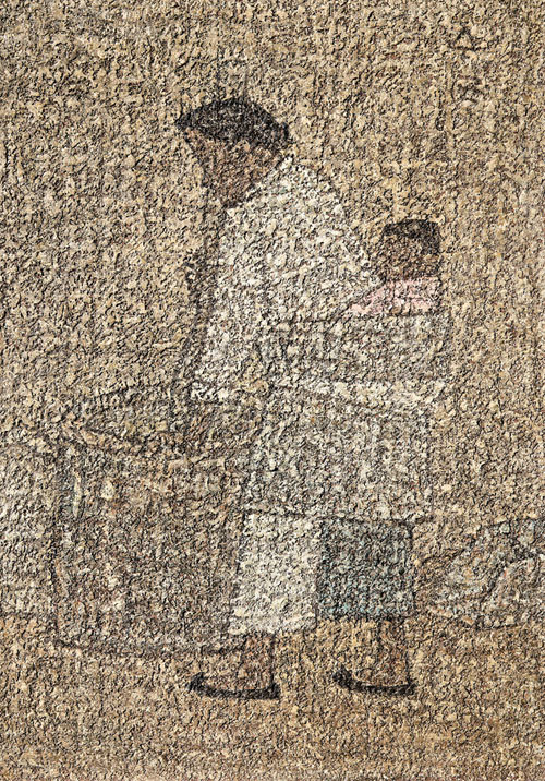 반면 박수근에게 전쟁은 가족의 생존을 위한 처절한 노동의 시작이었다. 그는 1.4 후퇴 후 가족과 함께 피난길에 올랐고, 군산 부두에서 짐을 나르는 노동으로, 서울로 올라와서는 미군 부대 PX에서 미군들의 초상화를 그려주는 일로 생계를 유지했다. 그의 그림이 잿빛 돌덩이처럼 거칠고 두터운 질감(마티에르)을 갖게 된 것은, 이처럼 고단한 생활 속에서 얻은 끈질긴 생명력의 반영이다.