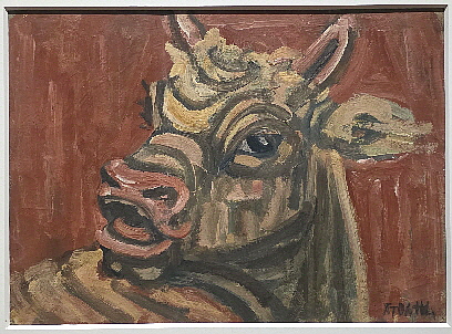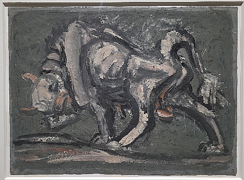 <황소>는 그 고통이 터져 나온 순간이다. 가족과 떨어져 지내는 현실, 편지 한 장으로 마음을 전해야 하는 외로움, 그리고 그리움이 분노로 변해 화면을 휘젓는다. 황소는 울부짖는다. 사랑하는 이들을 지키지 못한 자책, 함께하지 못한 시간에 대한 절망이 붓질로 폭발한다. 그 몸부림은 단지 생존을 위한 것이 아니라, 가족에게 다시 닿고 싶은 절박한 몸짓이다.