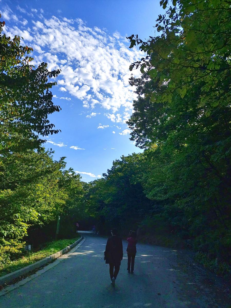 마니차를 돌리며 오르다보니 시야가 탁트이고 전망이 참 좋다. 멀리 속초시가와 바다가 보인다.