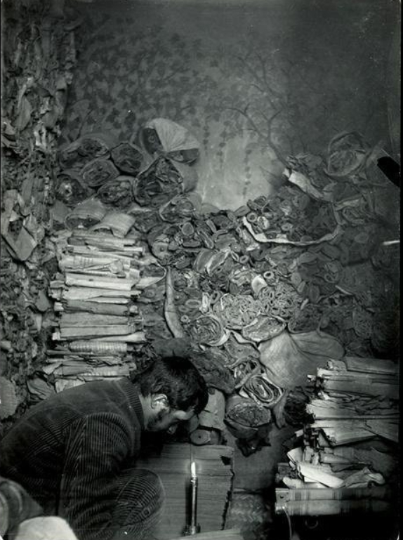 1906년 프랑스의 동양학자 펠리오(P. Peiliot, 1878~1945)는 우연히 우루무치에서 유배된 관리로부터 돈황 막고굴의 장경동에 대한 얘기를 듣는다. 그는 1908년 2월 일행 세 명을 이끌고 돈황 막고굴에 도착하여 장경동의 유물들을 세밀히 탐색했다. 5월 12일 밤, 펠리오는 왕원록에게 은자 500냥을 주고 장경동에 있는 6600여 권의 고문서, 당대(唐代) 회화, 번당(幡幢), 직물, 목제품, 목활자, 법기(法器) 등을 넘겨 받아 파리로 보냈다.