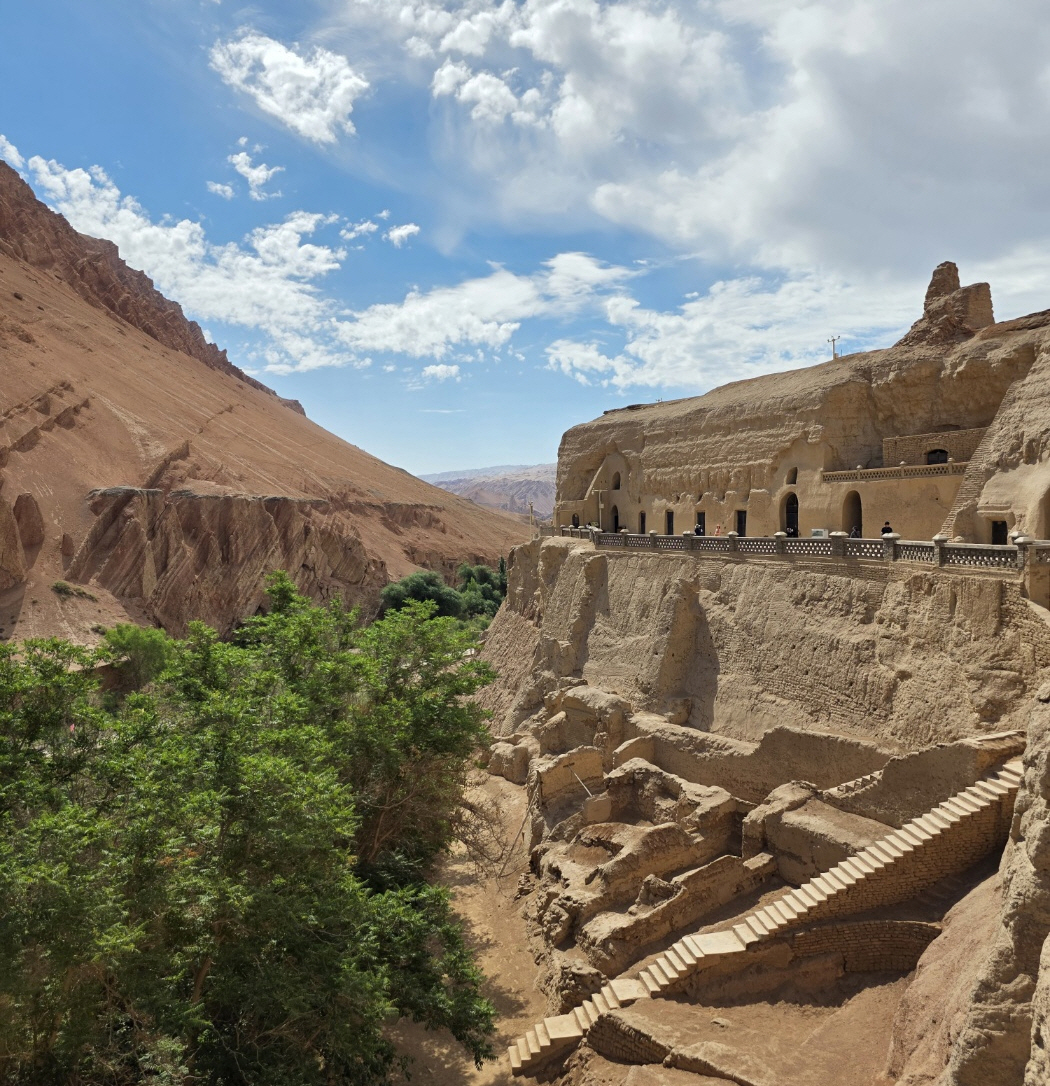 서유기의 배경 화염산이 나타났다. 차창 밖으로 펼쳐지는 화염산은 경이로웠다. 불꽃 모양도 보이고, 깊은 주름이 만두 모양 같기도 하다. 높낮이에 따라 저마다의 고유한 자태를 자랑이라도 하려는 듯한 이름 모를 봉우리들. 가파른 모래 언덕에 기기묘묘한 바위들이 화염산 이름이 붙여진 이유를 확인해주었다. 처음보는 색다른 풍경이었다. 이 산은 낮에는 태양열을 흡수해 붉은색을 띠지만, 밤에는 그 열을 방출하며 차가운 색으로 변한다고 한다. 이 자연 현상은 옛날 사람들에게 신비로운 이야깃거리를 제공했고, 많은 전설과 신화가 이곳에서 탄생했다. 화염산의 경이로움은 과학적으로도 흥미로웠지만, 그보다 더 중요한 것은 이 지역 사람들이 자연과 어떻게 조화를 이루며 살아왔는지였다. 베제크리크에서 찾아 볼 수 있었다.