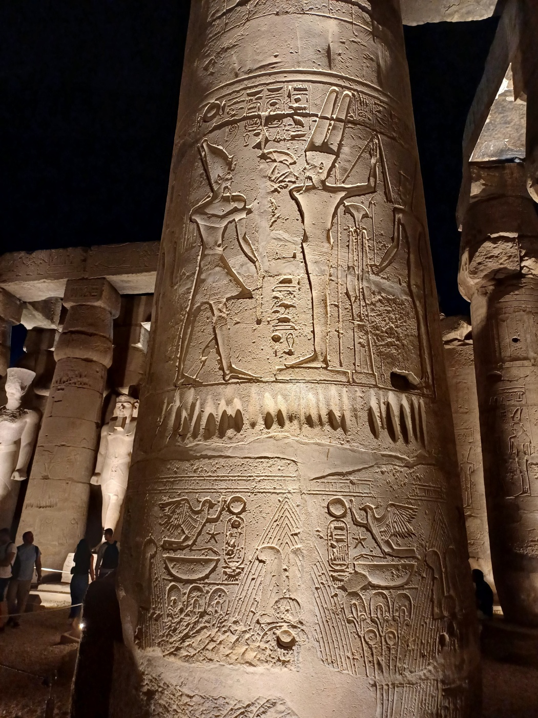 크루즈는 강을 따라 악어 신과 매의 신을 함께 모시는 콤옴보 신전 앞에 닿았다. 이 거대한 배가 시간의 강을 따라 고대문명의 심장부로 실어 나르는 타임머신처럼 느껴졌다. 신전들은 시간의 이정표였다. 강가에 우뚝 선 신전은 달빛 아래 신비로운 위용을 뿜어냈다.코옴보와 에드푸 신전을 차례로 들렀다. 그 웅장한 기둥, 정교한 벽화, 사라진 색감까지도 이집트의 한 조각이었다. 신전 입구에서부터 이집트 특유의 상형문자가 빼곡히 새겨져 있다. 돌기둥 사이를 천천히 거닐며 신이 사라진 신전의 숨결을 만져보았다. "바람은 사라지지만, 돌기둥은 기억한다."는 어느 여행자 낙서도 보았다.