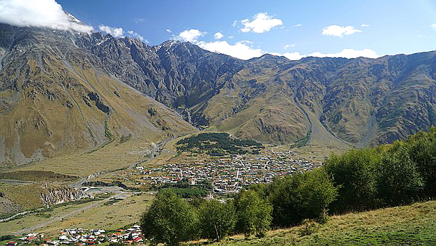 카즈베기는 이 고장이 낳은 시인의 이름이다. 이 땅의 영혼을 시로 새긴 인물이어서 그런지, 시인의 이름이 지명으로 바뀌었다. 그의 시는 화려하지 않지만, 고요한 산처럼 묵직한 울림을 준다. 마을 중심의 시인의 동상은 그가 남긴 문학의 흔적을 조용히 간직하고 있다. 그는 고향을 이렇게 노래했다.