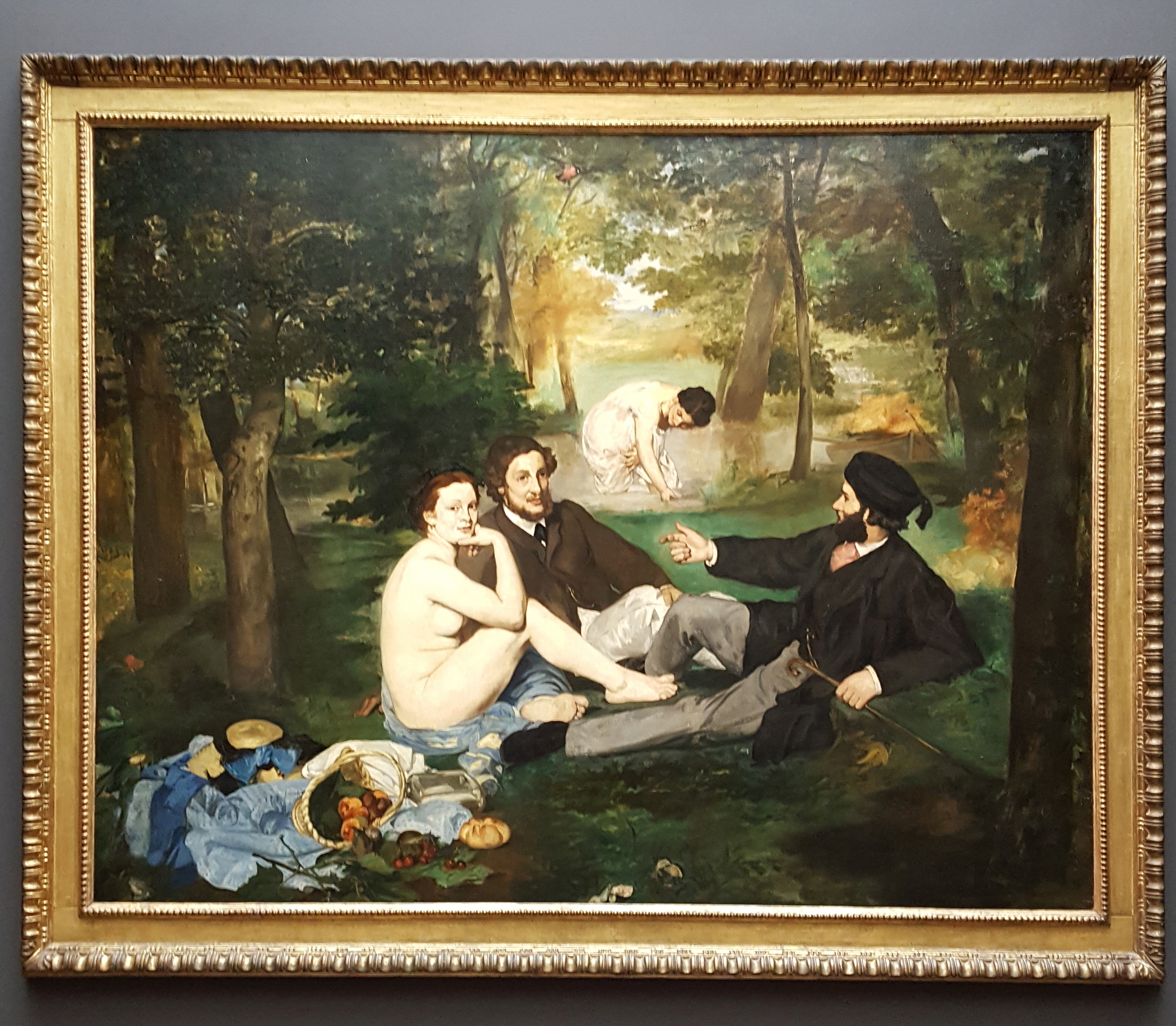 인상파의 방에 들어서는 순간, 공기가 달라진다. 이전의 고전적이고 중후한 작품들과는 달리, 이곳은 빛과 색채로 가득 찬 세계다. 여러 방을 지나는 사이 벽면에는 마네, 모네, 르누아르, 드가의 작품들이 벽면 여기저기에 걸려 있고, 그 앞에 선 관람객들은 그림 속 풍경에 흡수된 듯 조용히 숨을 고른다. 마네의 문제작, 당시 사회의 불편한 진실을 드러낸 <풀밭 위의 식사> 앞은 대체로 한산하다. 이 작품은 옷을 입은 남성들과 나체의 여성이 함께 앉아 있는 구도로, 작품 속의 여성이 관람자를 정면으로 응시하는 모습은 미술의 경계와 도덕의 기준을 흔들어 관객들에게 충격을 안겨준 작품이다.