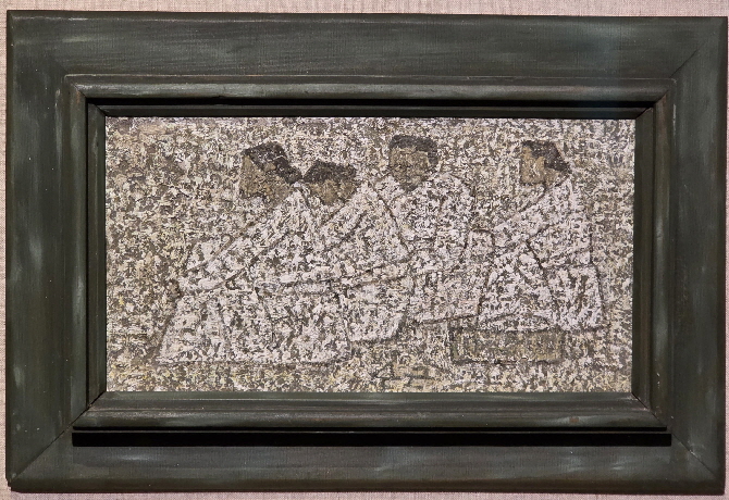 <나무와 두 여인>은 앙상한 나목 아래 아기를 업은 여인과 머리에 짐을 인 여인이 등장한다. 이 나무는 말라 죽은 고목이 아니라, 봄을 기다리는 겨울나무다. 박수근은 자신의 고단한 삶과 희망을 이 나무에 투영했다. 박완서 <나목(裸木)>은 이 그림을 보고 깨달음을 얻는 데서 집필했다는 소설이다. 주인공은 젊은 시절 박수근이 힘들게 그렸던 그림을 '고목(枯木)'이라고 생각했지만, 유작전에서 다시 본 그 나무가 죽은 나무가 아니라 혹독한 겨울을 견디며 봄을 기다리는 나목이었음을 깨닫는다는 내용이다. 이 그림의 단조로운 무채색은 절망이 아니라 인내의 색이다. 나무는 박화백 자신이고, 여인들은 그의 아내와 딸일지도 모른다. 그들의 삶은 고단하지만, 나무의 품속에서 든든하게 기댈 수가 있다. 나무 아래 두 여인은 그대로 내 어머니였다. 어머니는 등에 업고 머리에 인 모습이었다. 유년 시절 여섯 자식을 먹이고 입히고 가르치기 위한 어머니의 고달픈 삶, 손에 물이 마를 날이 없었다. 고생 끝에 관절염이라는 모진 선물을 받고 다리를 절룩이시던 어머니의 뒷모습이 떠올라 가슴이 쓰렸다. 그 시절, 어머니에게는 마음 편히 기댈 나무가 있었을까?