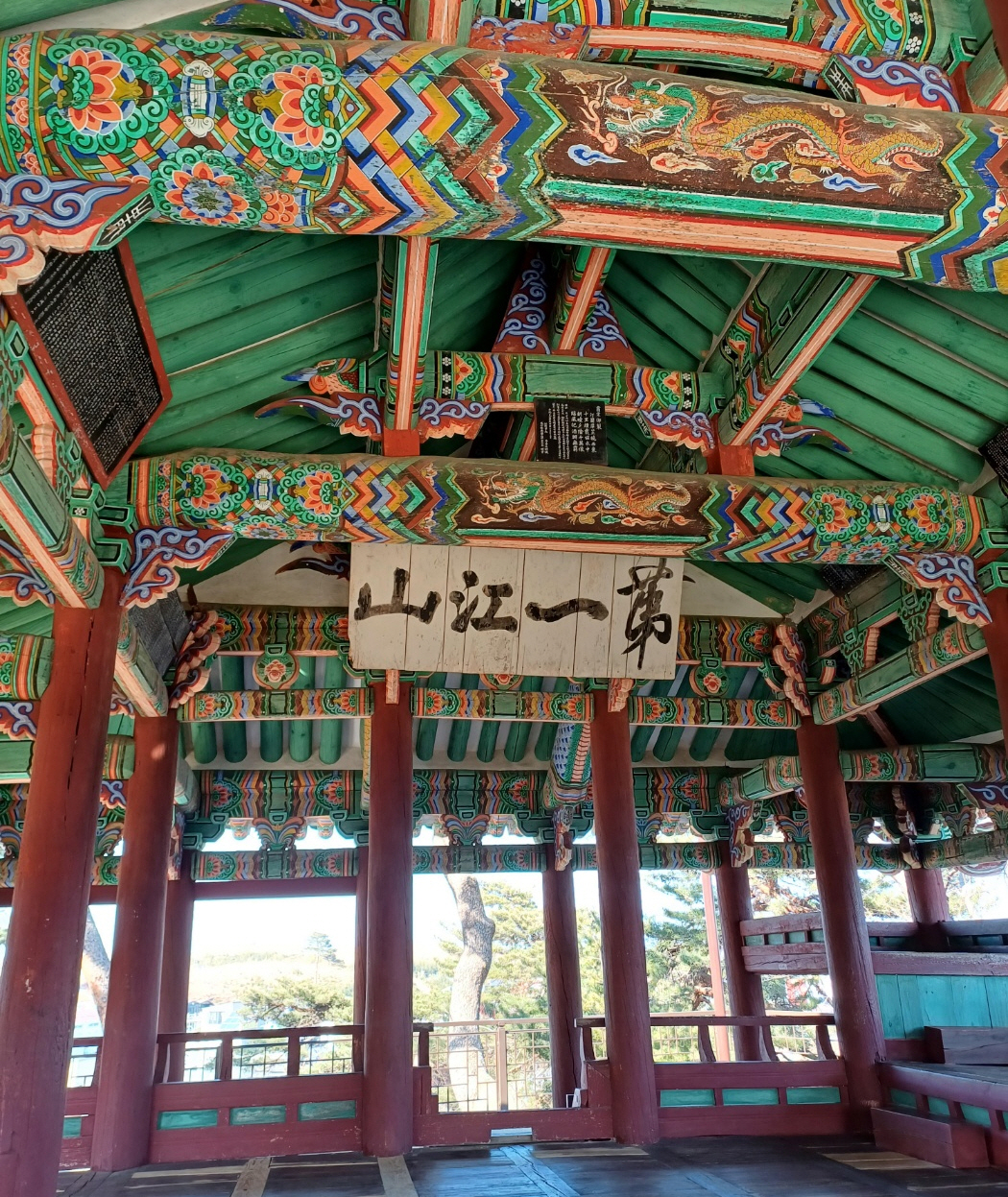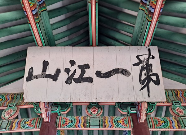 경포대에 오르니, 바람은 차갑고 호수는 숨을 죽인다. 그 고요 속에서 가장 먼저 시선을 붙드는 것은 정면에 걸린 편액, 〈第一江山〉이다. 간결한 네 글자지만, 그 안에는 강릉의 자부심과 풍류, 그리고 천년을 넘는 서예의 숨결이 담겨 있다.