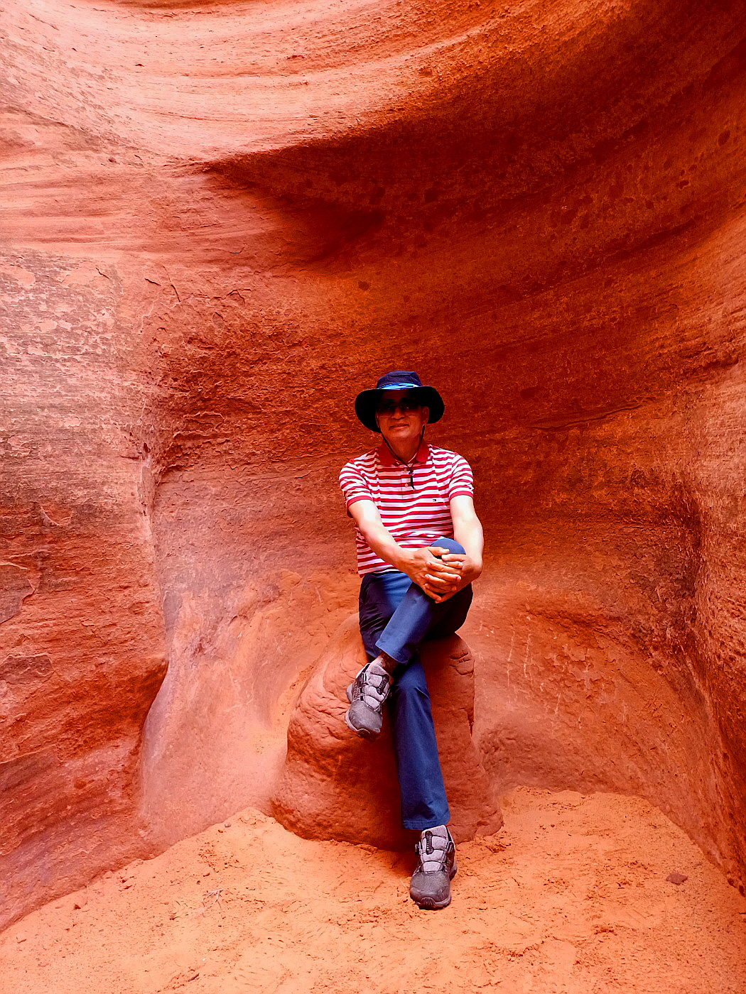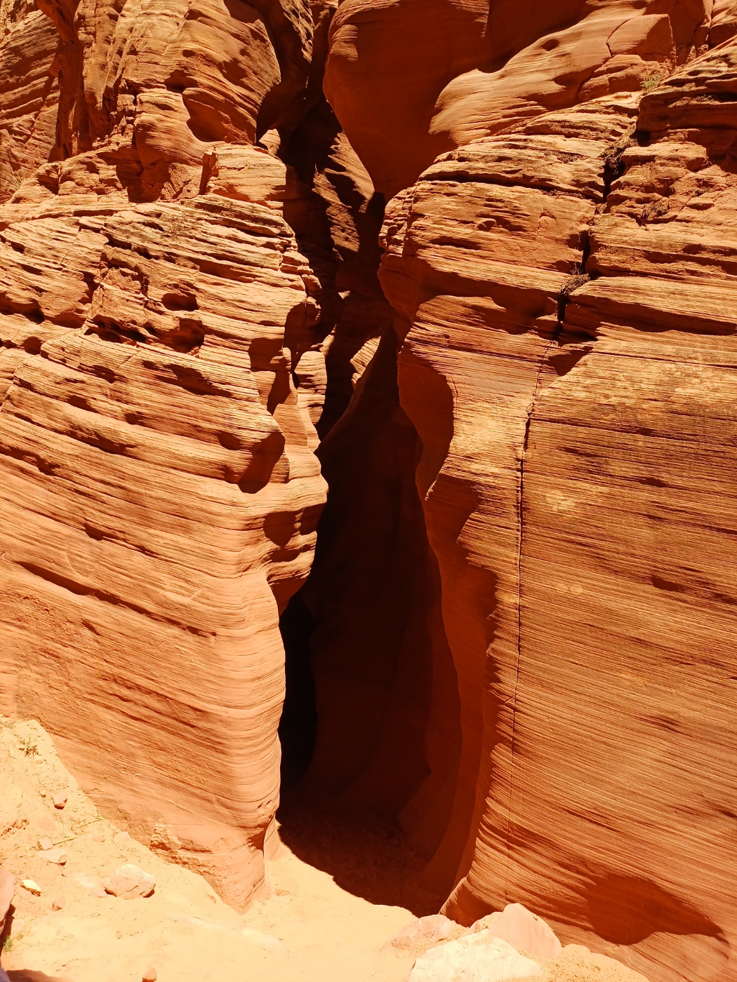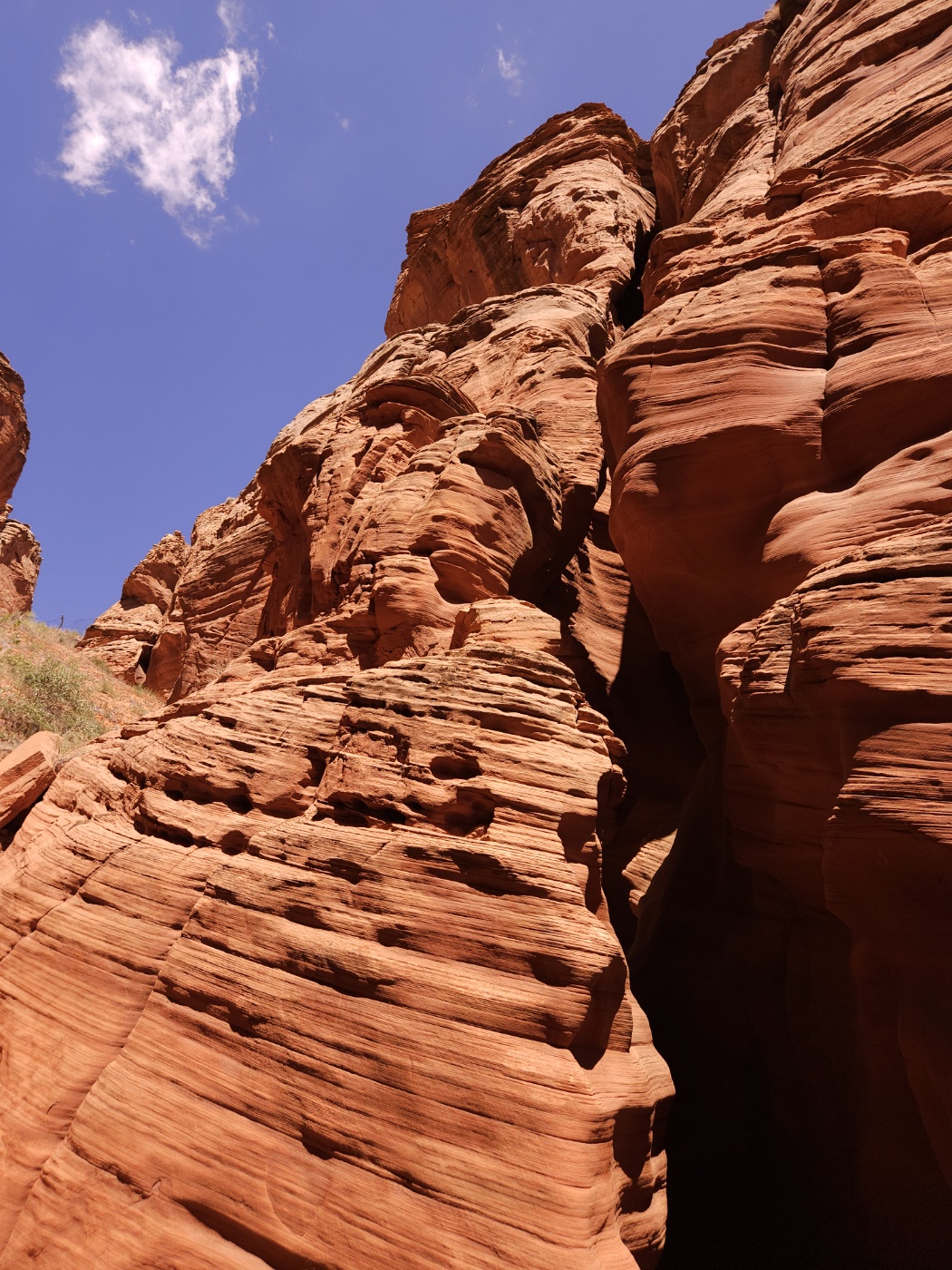 높고 좁은 바위 틈새로